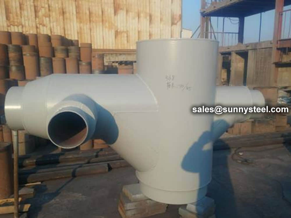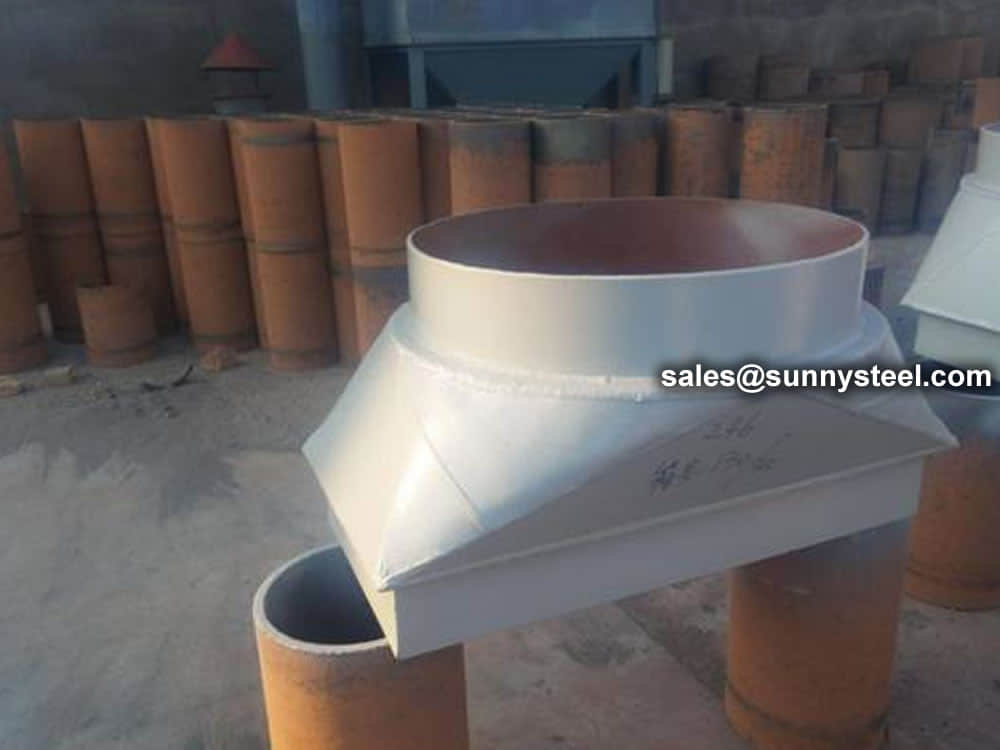 Cast basalt composite pipeline of dust removal system are used too many industrial areas where the abrasive, chemical and hot materials transported and which are commonly lined steel elbows. Cast basalt composite pipeline of dust removal system is composed of steel pipe tee, cast basalt pipe and cement mortar concrete. At the same time cement mortar is selected as the filling material and this can make the inside surface of steel pipe in alkali mediums. So the surface of steel pipe generates purifying films These films can prevent being rusted.